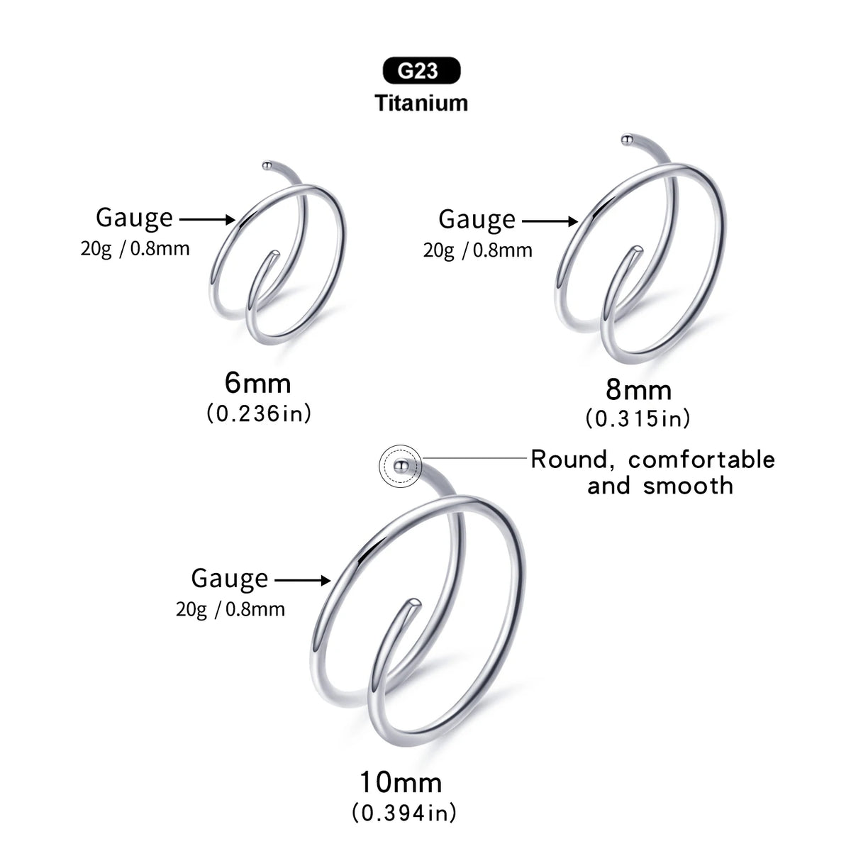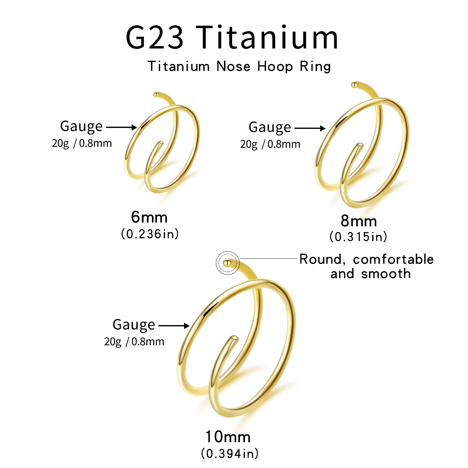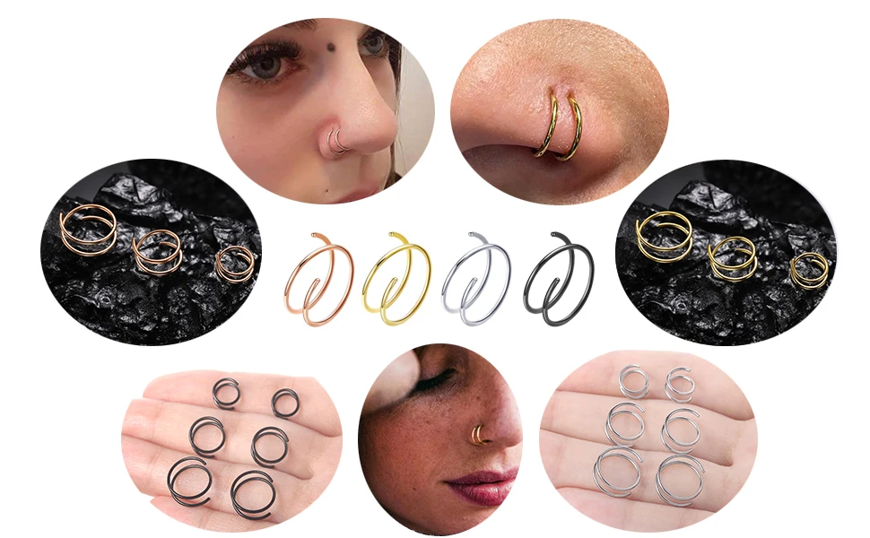 ★Size ★:Nose Rings Gauge:20G(0.8mm), Inner Diameter:6/8/10mm, common nose piercing size.