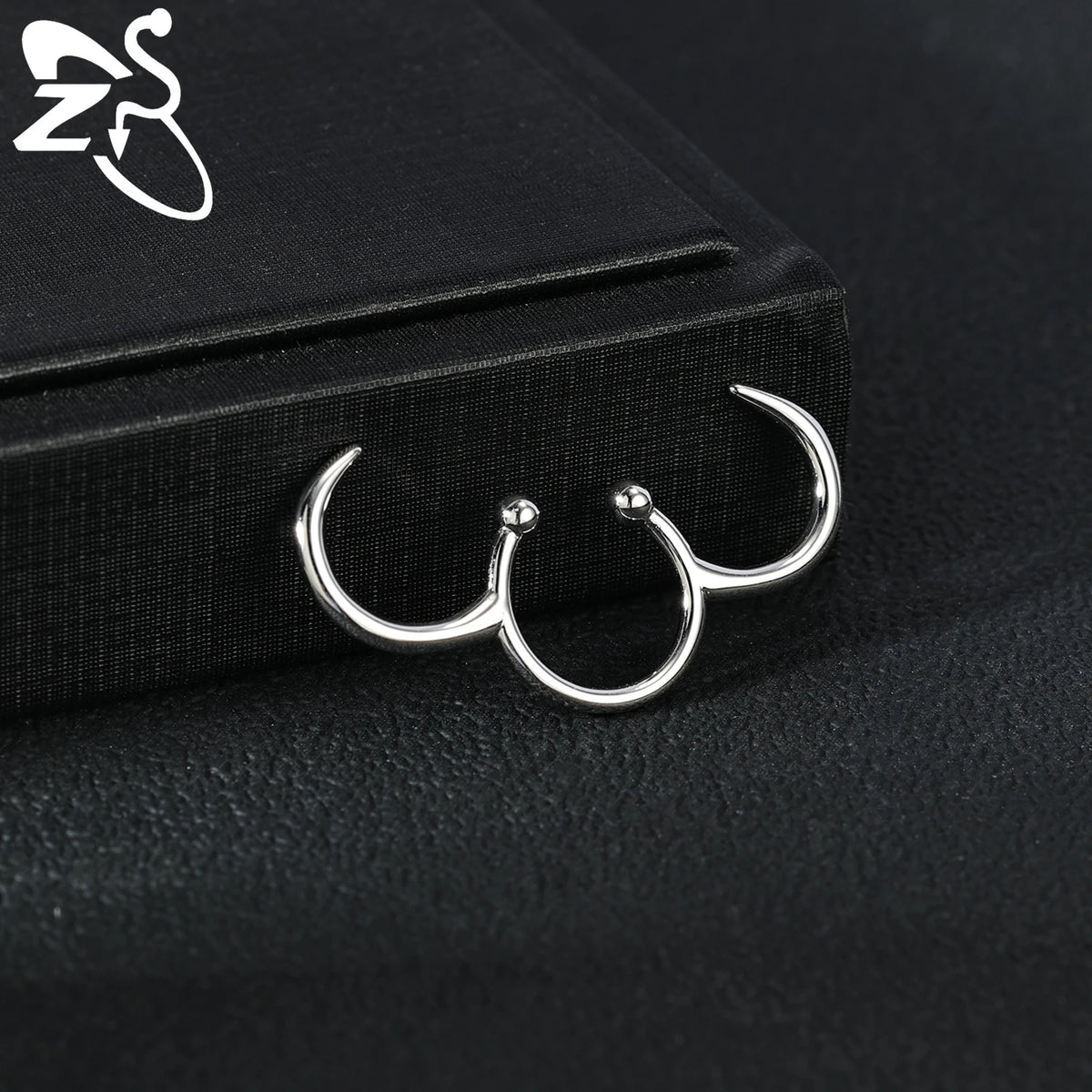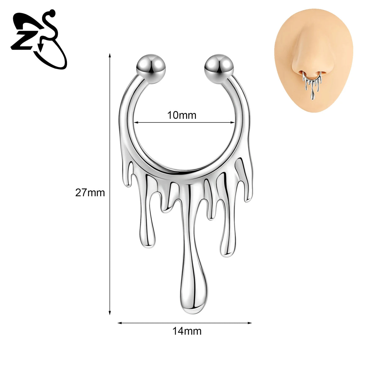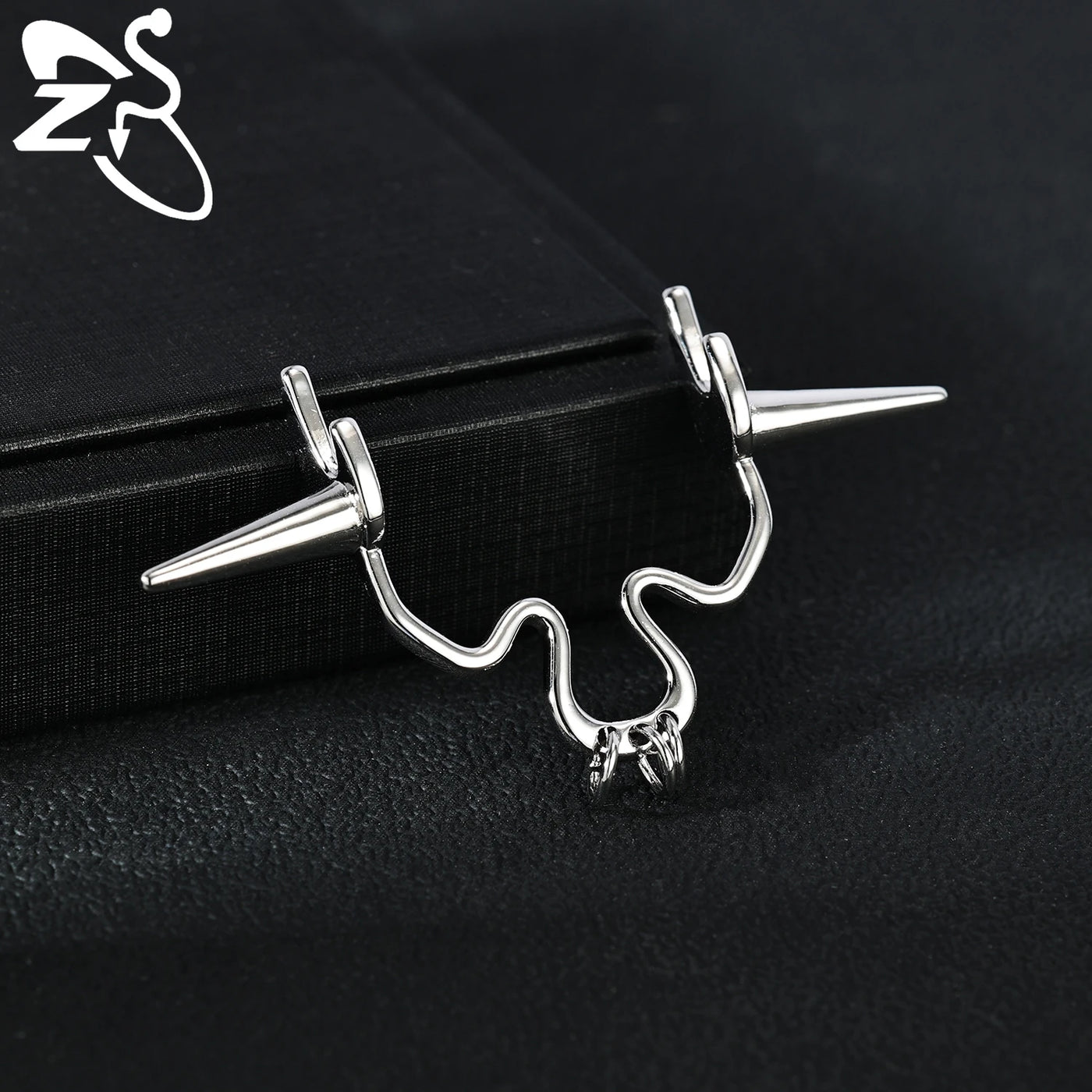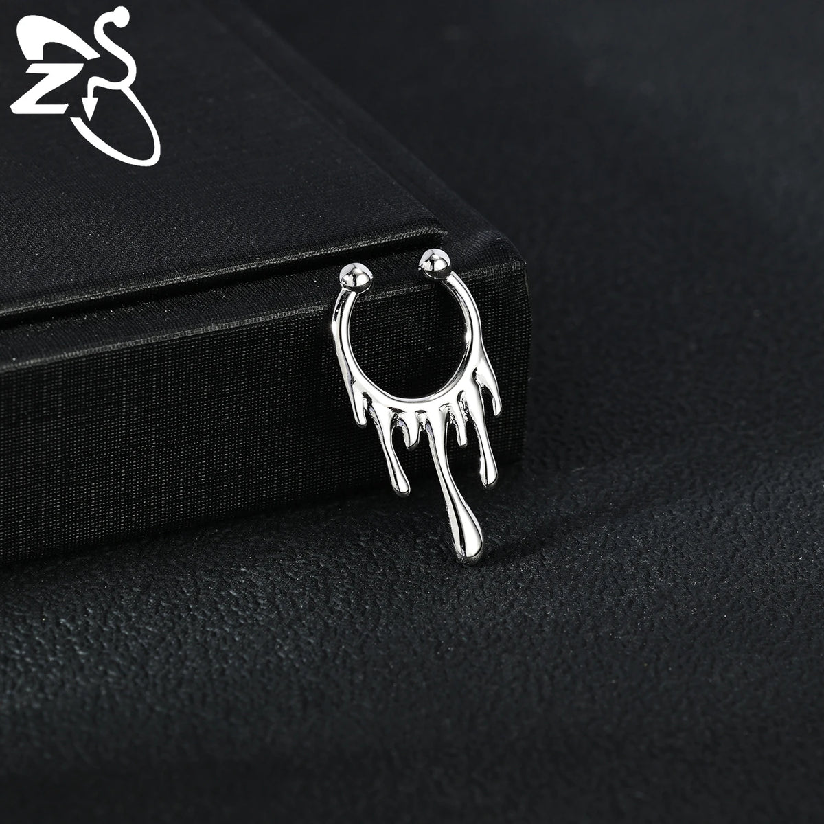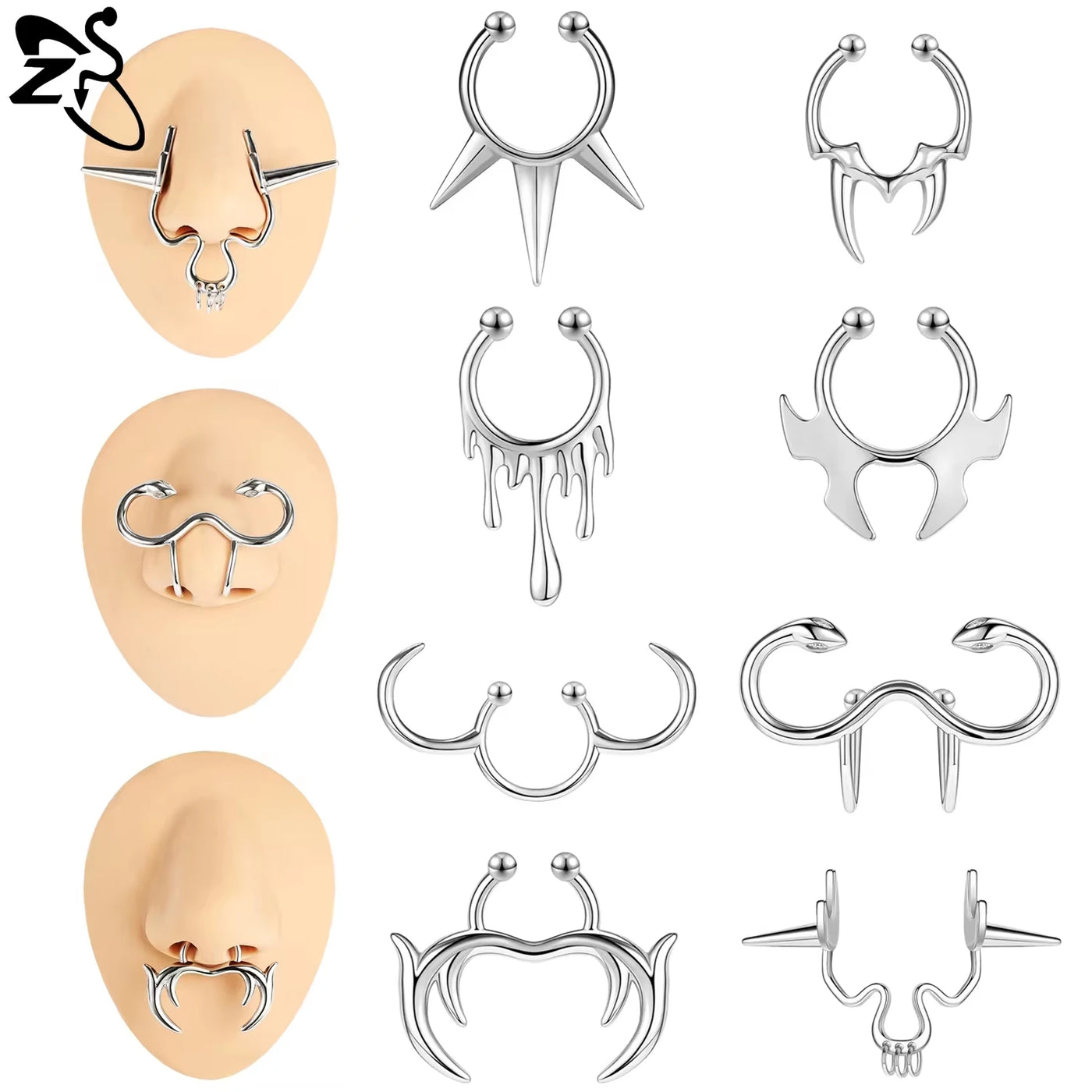 ZS 1 Piece Punk Stlye Fake Septum Ring For Men Women Irregular Nose Cuff Cyberpunk Non Piercing Clip On Nose Piercings Jewelry